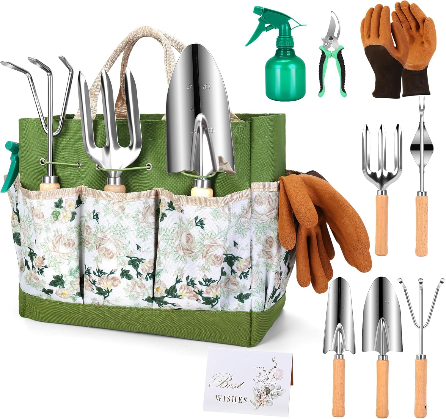 Garden Folding Gardener Stool with Gardening Tools Insulation Garden Bags Plus 5 Garden Tools and Gardening Kneeler Ideal Gift for Mother’s Day/Father’s Day (Green)