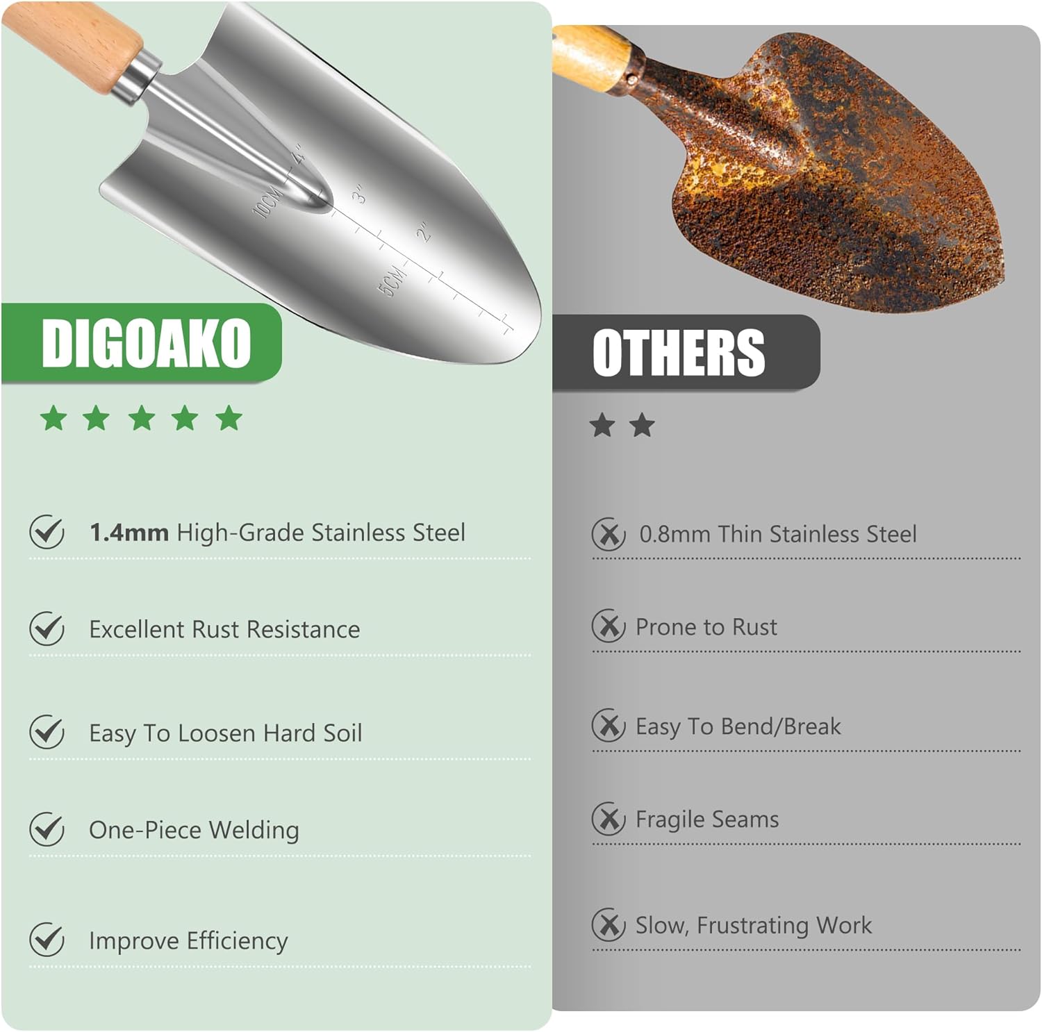 - 【Premium Stainless Steel & Rust-Proof Durability】Crafted with heavy-duty stainless steel, this garden tool set resists rust, corrosion, and deformation even in harsh outdoor conditions. The scratch-resistant blue film ensures tools arrive pristine—peel to reveal long-lasting, maintenance-free performance perfect for heavy soil, weeds, and year-round use.