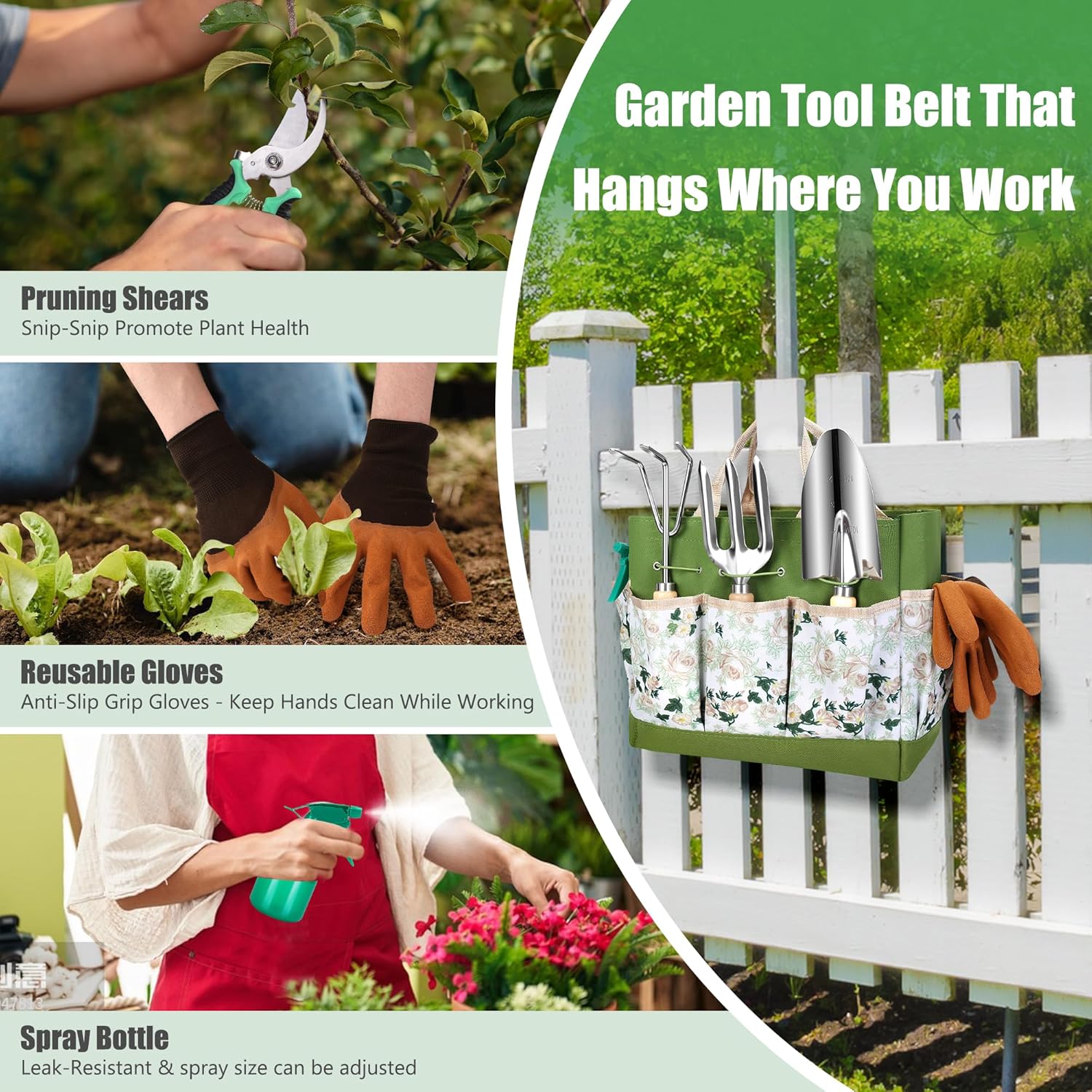 - 【⏱️ Space-Saving & Time-Efficient Garden System】Tote with dedicated slots + hanging holes ensures tools are organized in seconds. The compact kit saves 50% storage space vs. bulky sets—perfect for sheds, apartments, or quick patio cleanups.